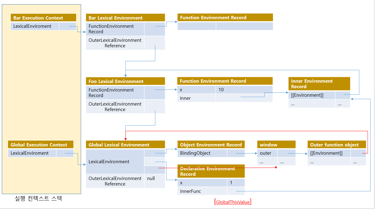 //그리고 outer 함수의 실행 컨텍스트는 실행 케텍스트 스택에서 팝되어 제거된다.