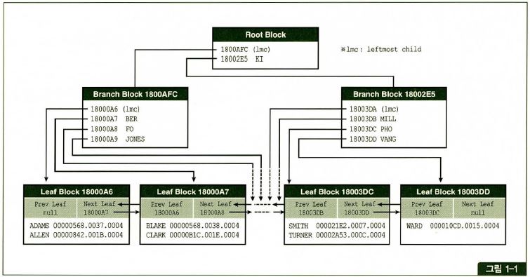 DBMS는 일반적을 B*Tree 인덱스를 사용한다. 루트와 브랜치 블록에 있는 각 레코드는